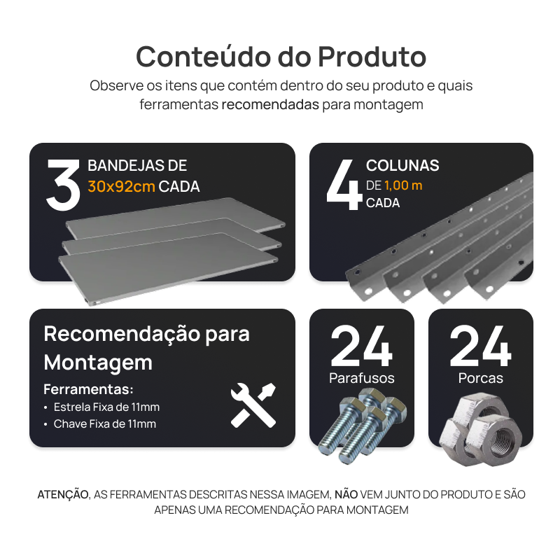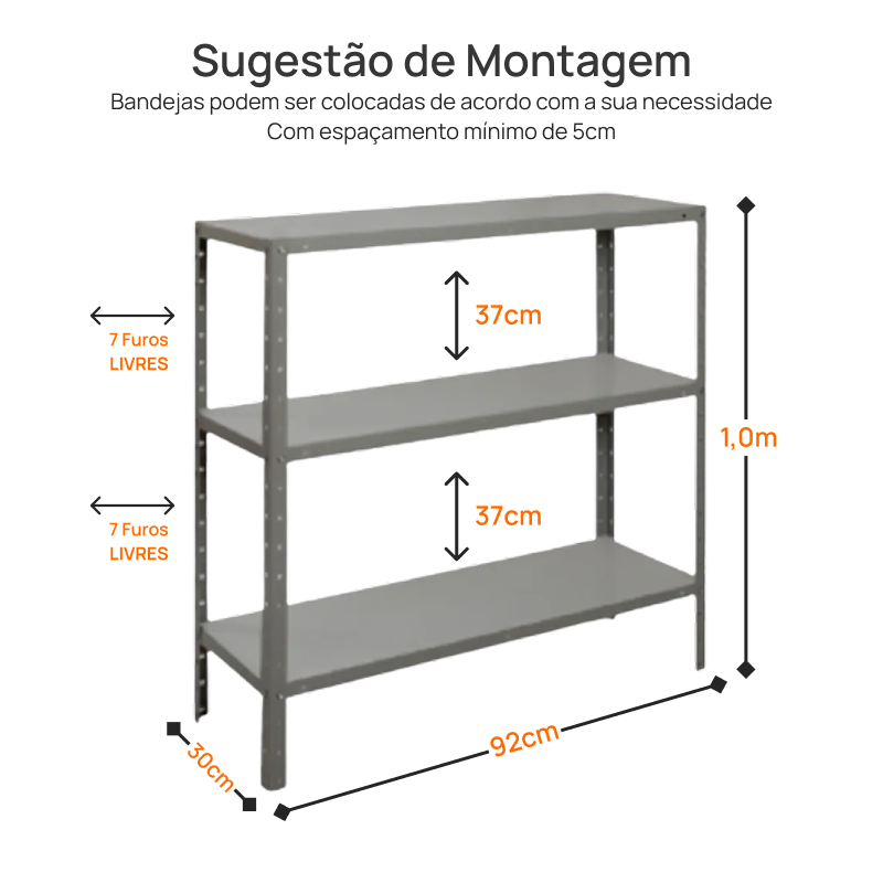 Ela conta com 3 bandejas totalmente reguláveis, permitindo que você molde a estrutura de acordo com o tamanho exato dos seus itens. Capaz de suportar 22kg por prateleira, ela é a solução ideal, estável e durável para organizar desde documentos e suprimentos de escritório até mercadorias fracionadas.